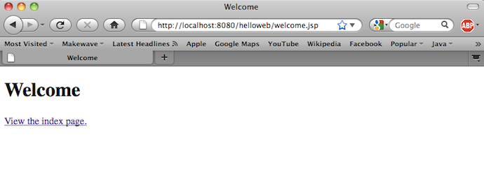 The final step is to deploy the WAR into Knopflerfish. Pax Web will take the bundle and deploy it into Jetty. You deploy the WAR just like any other bundle. Using the desktop you can install directly from this URL: http://www.knopflerfish.org/tutorials/kf_pax_web/HelloWeb.warAfter successfully installing HelloWeb the WARs web content is available under the Webapp-Context path defined in the manifest as described above, i.e.: